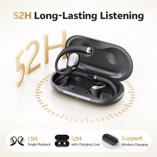 The flexible earhook design follows the natural curve of your ear, creating a secure yet feather-light fit. Soft, skin-friendly materials reduce pressure, making these earbuds comfortable even during long sessions. Because they rest outside the ear canal, you stay comfortable, ventilated, and aware of your surroundings at all times.